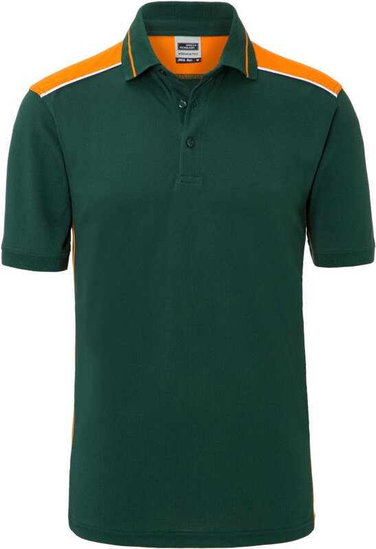 Pletený polokošilový límec a manžety na rukávech, knoflíková léga s 3- knoflíky, krční lemovka, pruhy v kontrastní barvě na límci, vsadky v kontrastní barvě na boku a rameni, lemování na přední části ramen, pratelné na 60°, lze sušit v sušičce při nízké teplotě