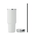 Dvoustěnný hrnek z recyklovaného nerezu s víčkem a brčkem z PE. Objem 1200 ml. (90 % recyklované nerezové oceli a 10 % nerezové oceli).